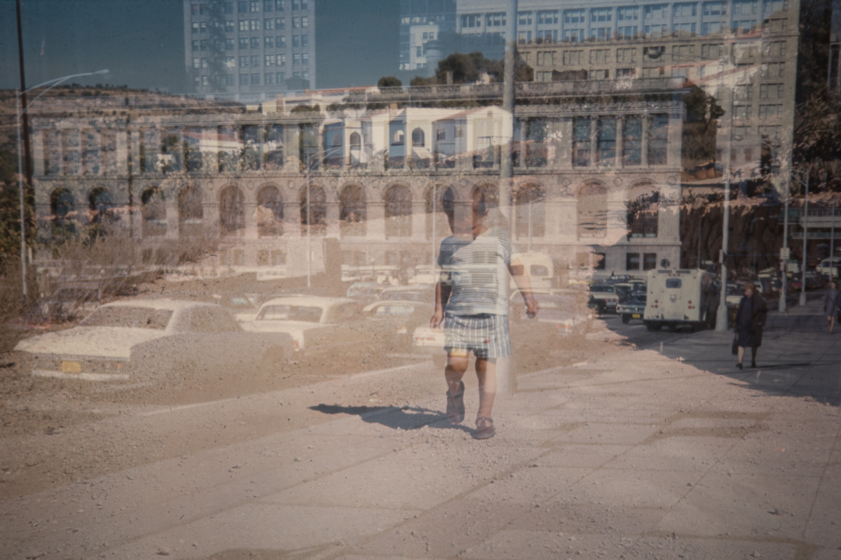 when returned from a holiday or my dad returning from a trip away we would sit in the living room to review slides from those trips on large screen in a dark room a bit like going to the cinema. I had been given what remained of those slides many years later and they were all jumbled up in a box. When putting them into the projects carousel a number of the slides got stuck and they were in no logical order. These accidents prompted me to experiment with creating multi-exposure images exploring how as we get older our memory can play tricks on us.